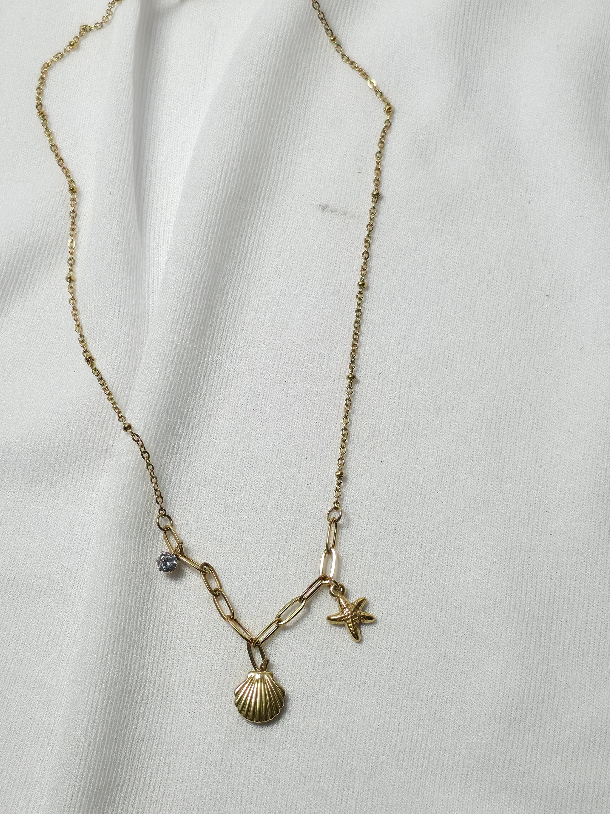 - Features ocean-inspired charms — a starfish, a seashell, and a sparkling crystal accent